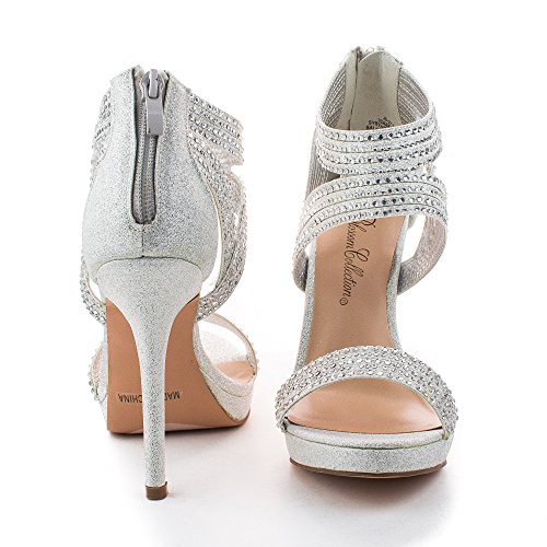 Binding : Apparel Product Description Shine and sparkle with these rhinestone studded party heels, featuring an open toe, contrast stitching, a toe strap, an ankle cut out cuff, a back center zipper for easy wear and closure, a slightly padded insole, an approximate 0.75 inch low platform for extra comfort, and an approximate 4.5 inch stiletto heel. (Please note that these measurements are based on a size 6). Available in Silver, etc. All man made materials. By Blossom Shoes. Please note that all monitors display color differently, what you see on your monitor might be slightly different from the actual product. We strongly suggest you to look at this listing in 3 or more different device to get an average of the color. 0