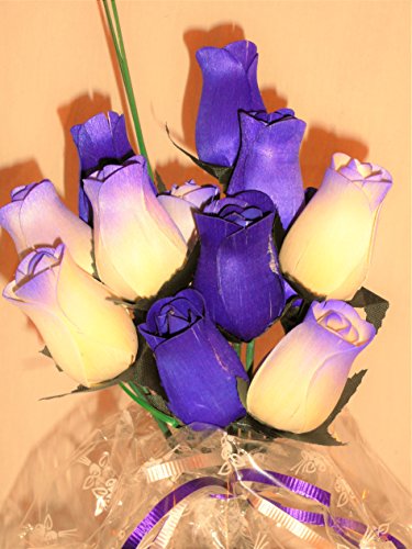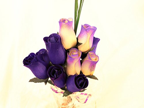 12 Dark Purple and White Wooden Rose Flowers