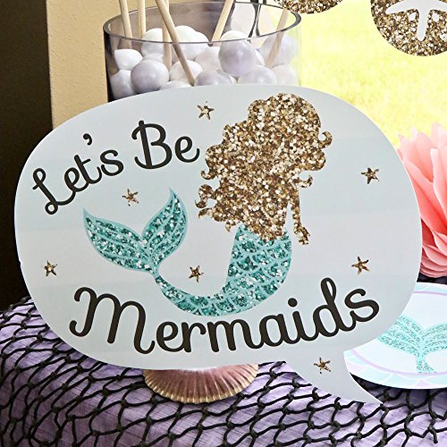 HIGH-QUALITY PARTY SUPPLIES: Let's Be Mermaids photo booth props are professionally printed on thick cardstock paper. They will arrive cut out and ready to assemble with the included wooden dowel sticks and adhesives. Let's Be Mermaids photo booth props use a No-Mess Glitter Print: Our photo booth props are designed with a printed image of glitter, eliminating glitter flake while maximizing bling effect!