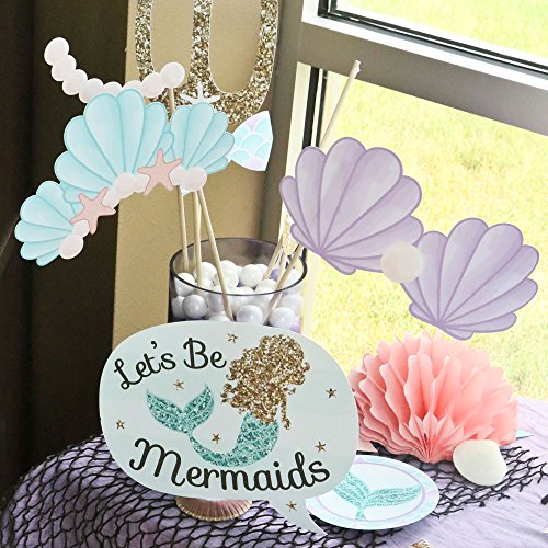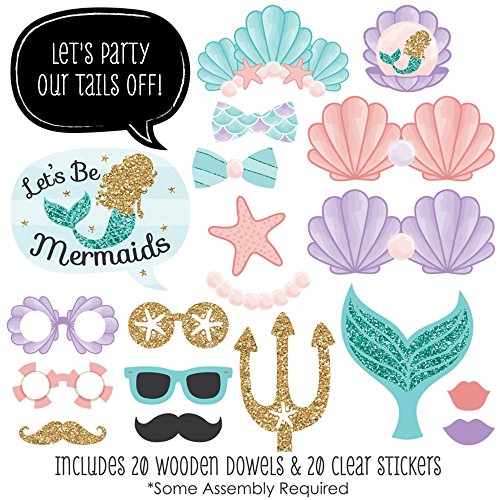 20-Piece Baby Shower or Birthday Party Photo Booth Props Kit INCLUDES 20 Let's Be Mermaids photo booth props, 20 wooden dowel sticks and adhesives for assembly. EASY ASSEMBLY: Simply attach the printed DIY photo booth props to the wooden dowels with included adhesive and reinforcing stickers.