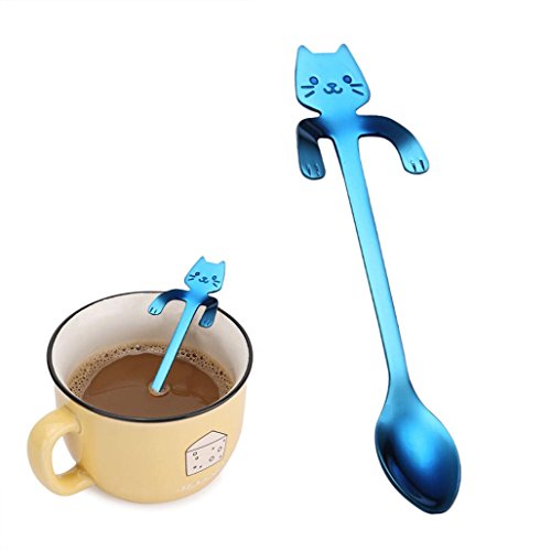 Studio : Jujunx Publisher : Jujunx Product Description Cute Cat Spoon Long Handle Spoons Flatware Coffee Drinking Tools Kitchen Gadget Feature: Food grade 304 stainless steel material, rust free and have a long lasting use, keep safe and health. Cute cat style, easily matches with existing flatware. Use for coffee, tea, dessert, appetizers, every-day durability with lasting luster. Two "hands" on the handle, they can hang the spoon on the rim of the cup. Easy to clean, the smooth polished edge will not cut your skin, dishwasher safe. Color:Gold,Rose? Gold,multicolour,Black Size:11.7*1.9cm Material:stainless steel Easy to clean Package Content: 1x Creative coffee spoon 0
