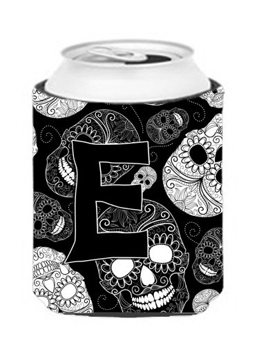 Letter E Day of the Dead Skulls Black Can or Bottle Hugger CJ2008-ECC
