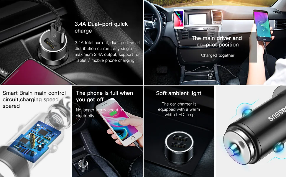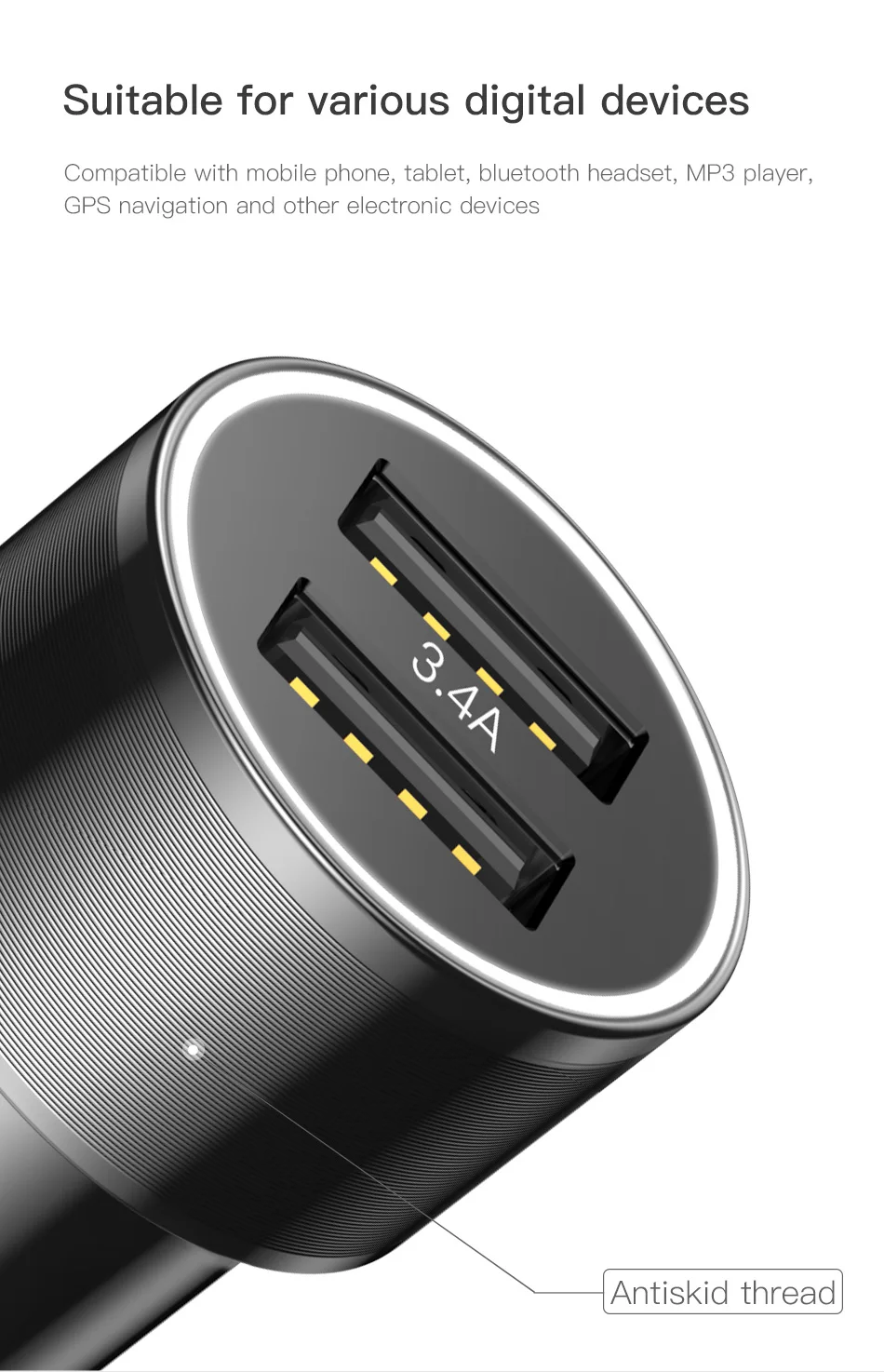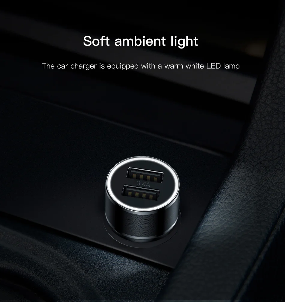 Feature 1:3.4A Fast Charger , Dual USB Ports , Soft LED Night Light