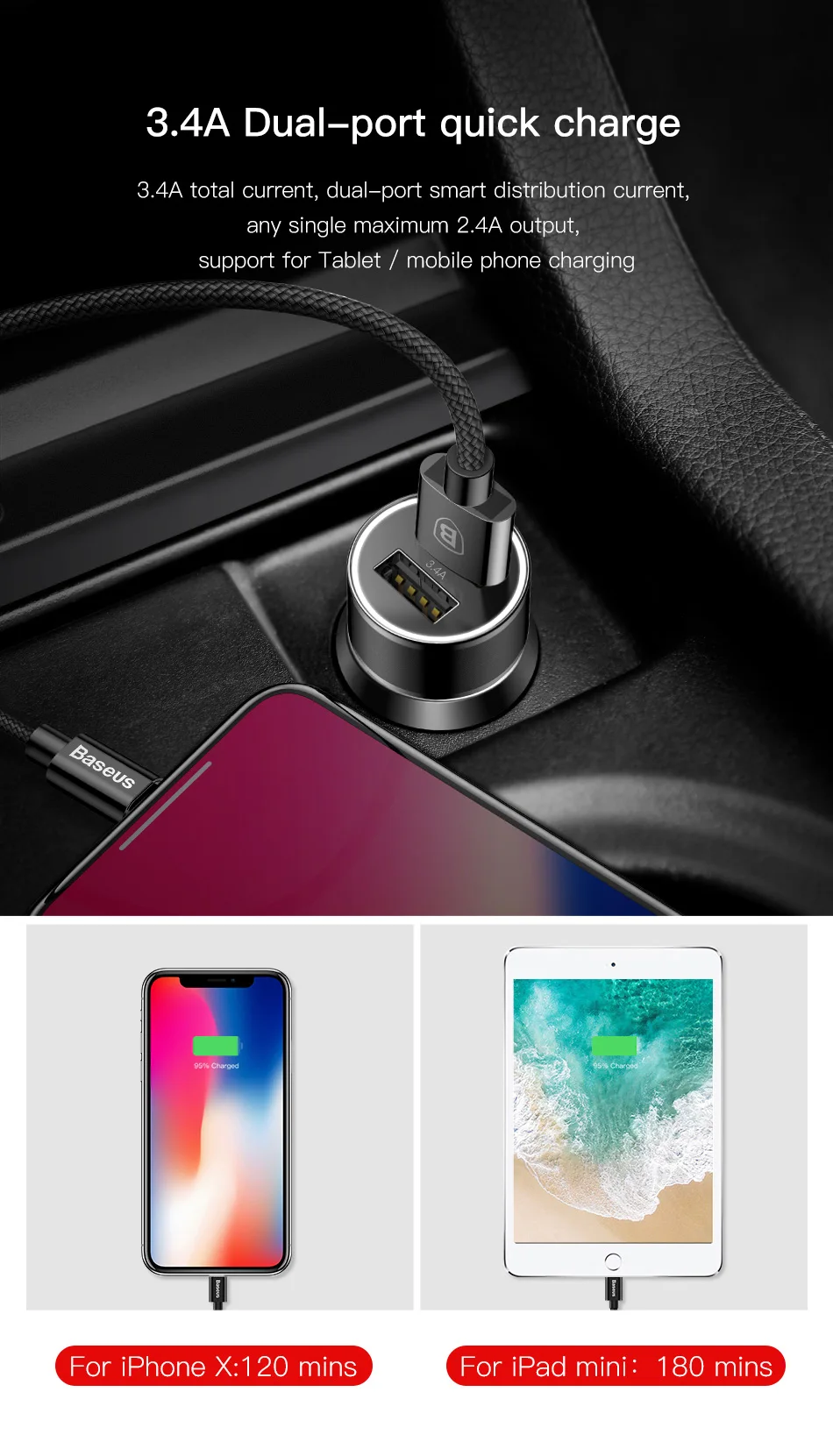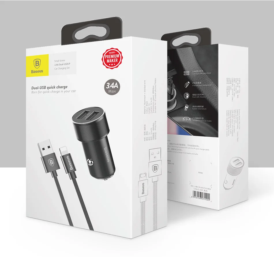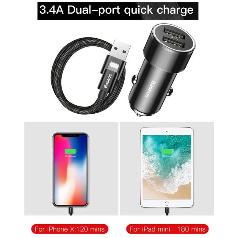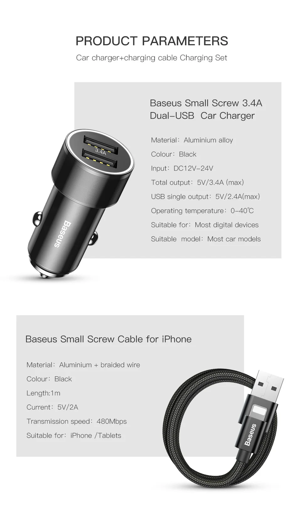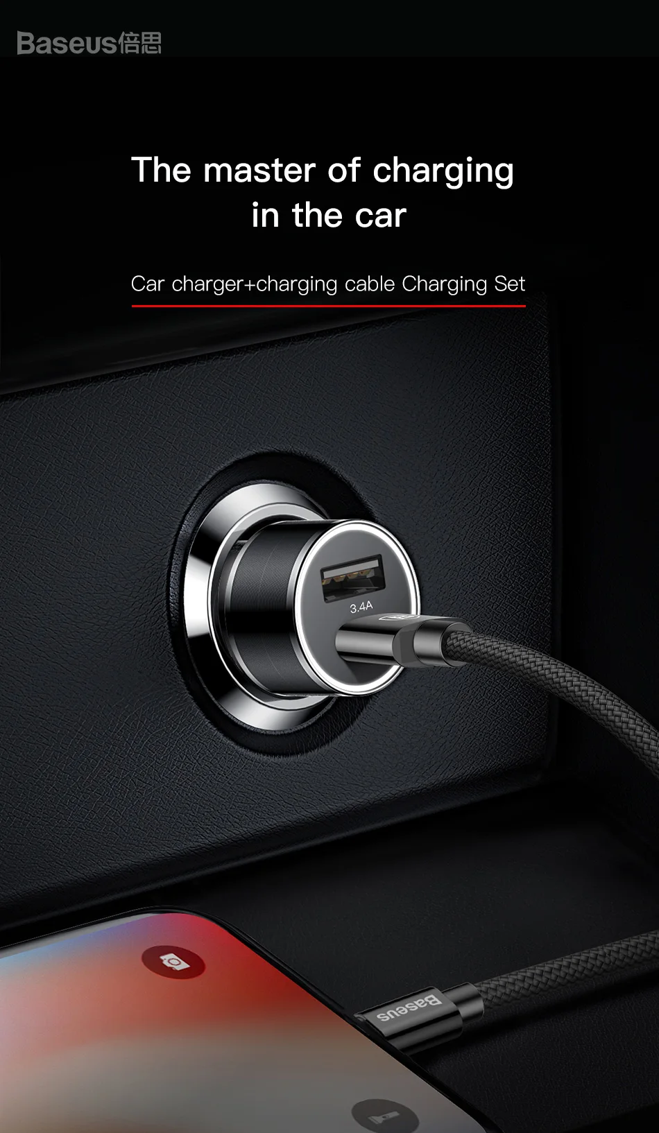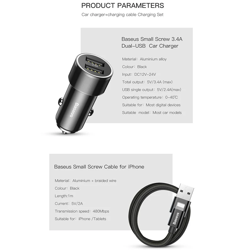 Model Number:Baseus Car Charger Set With 1m Cable for iPhone