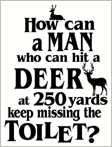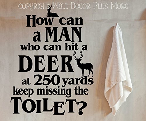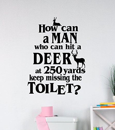 Wall Decor Plus More WDPM3459 Man Who Can Hit A Deer Keeps Missing Toilet Hunting Bathroom Vinyl Wall Decal, 20 x 15", Black