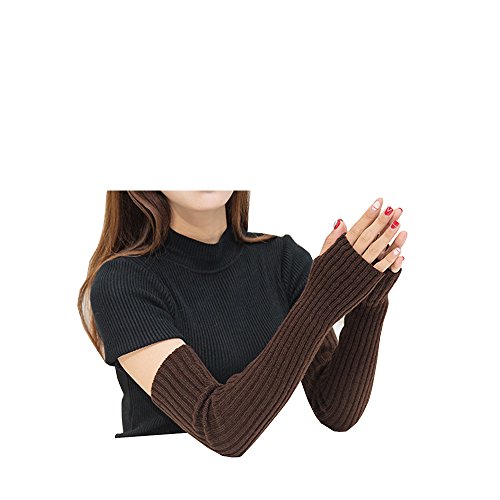 Docharn Super Long Arm Warmers Knit Fingerless Gloves Mittens Thumb Holes for Women