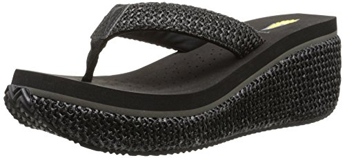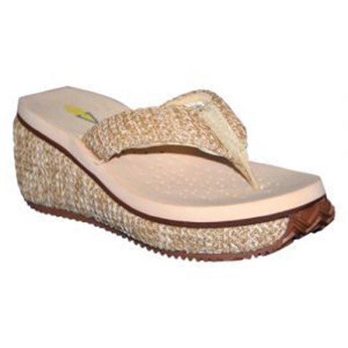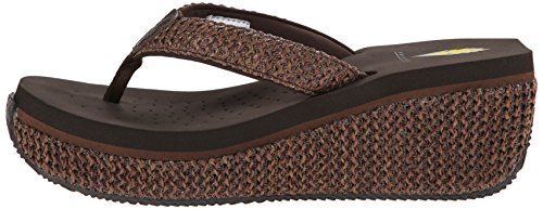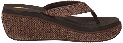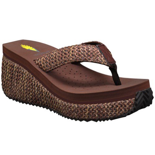 Thong platform wedge sandal featuring braided-fabric upper and midsole