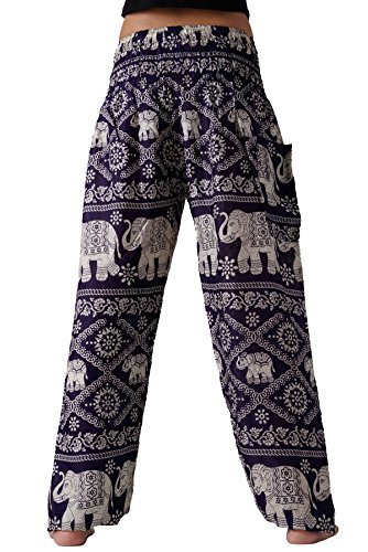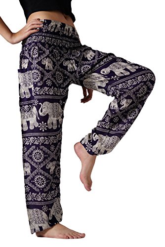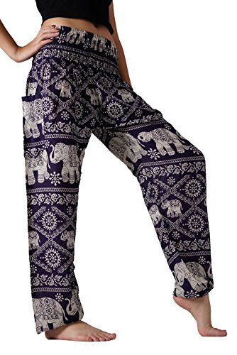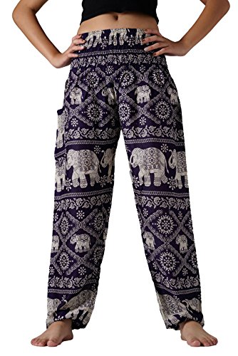 BANGKOKPANTS WOMEN'S YOGA PANTS ELEPHANT DESIGN DARK PURPLE US SIZE 0-12