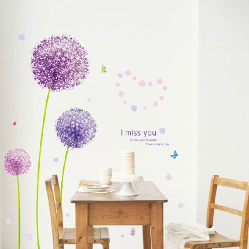 - Title : Hunnt® Removable Vinyl Wall Sticker Mural Decal Art Purple Dandelion