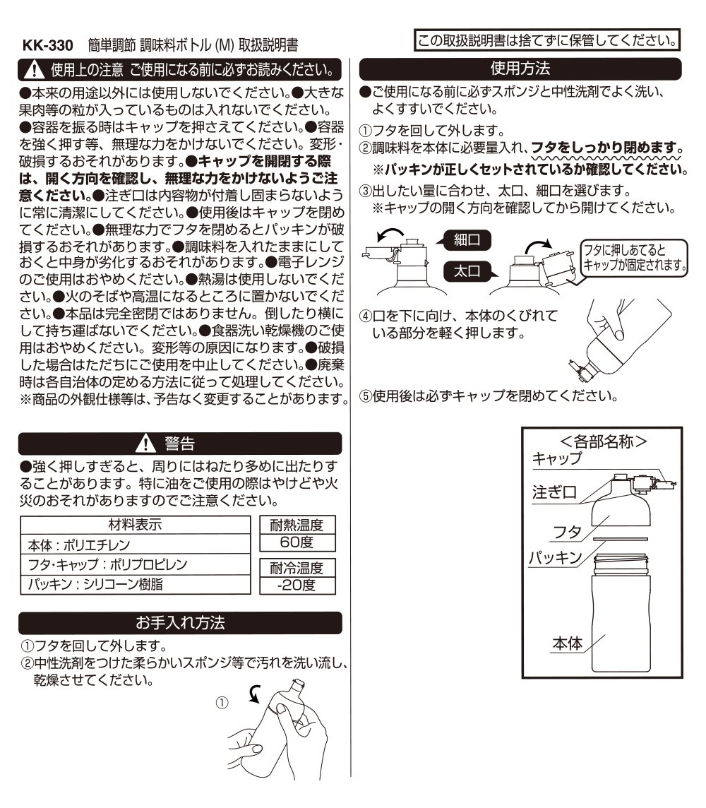 ● For refilling liquid seasoning such as dressing, sauce, oil.