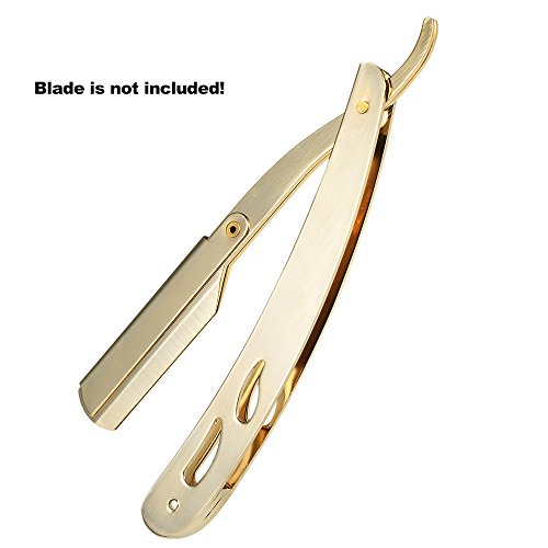 Anself Stainless Steel Straight Edge Barber Shaving Razor Gold Folding Straight Razor Single Edge Replaceable Blades