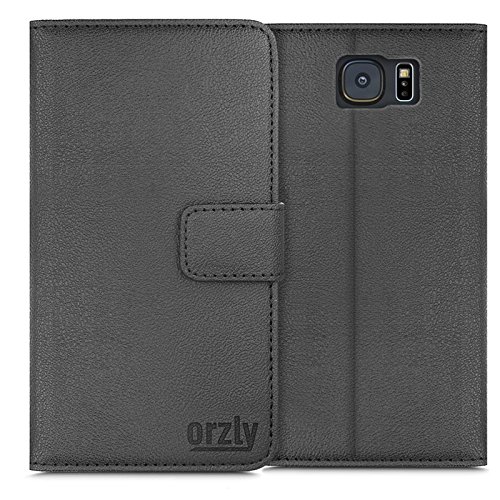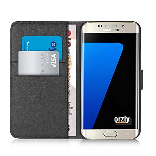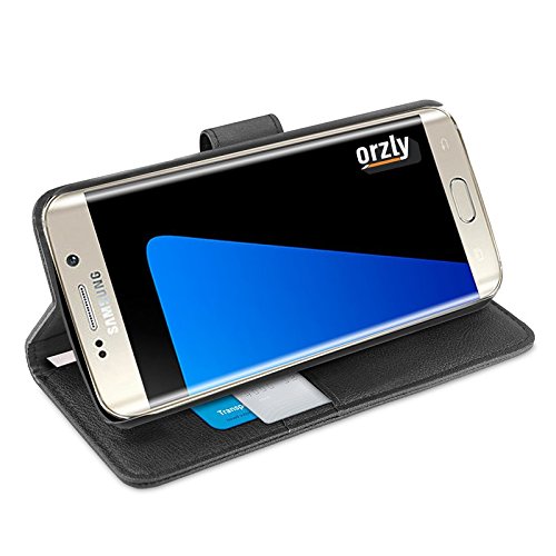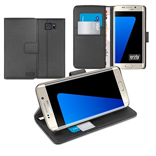Orzly® - Multi-Function Wallet Case for SAMSUNG GALAXY S7 EDGE SmartPhone (2016 Model) - BLACK Wallet Case Style Phone Cover with Card Pockets & Integrated Display Stand