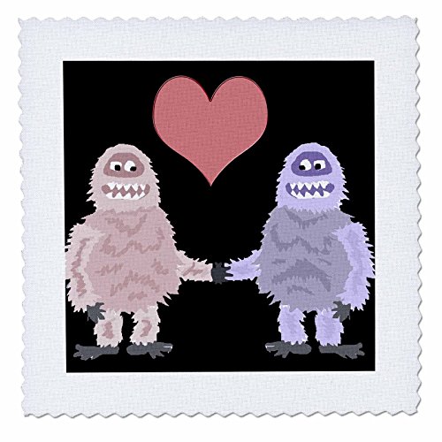 3dRose Funny Cute Abominable Snowman and Snowwoman in Love Quilt Square, 12 x 12"