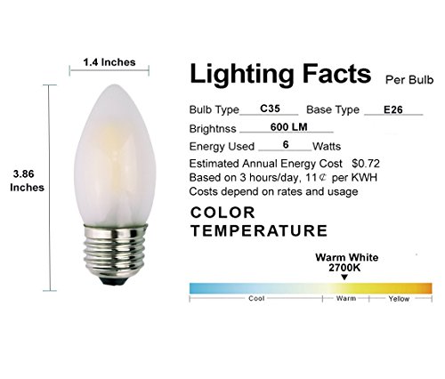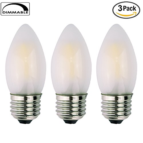 OPALRAY C35 6W LED Candelabra Bulb, Dimmable, Frosted Glass Cover, E26 Medium Base, 600LM 60W Incandescent Equivalent, Warm White Light 2700K, Torpedo Tip, 3-Pack