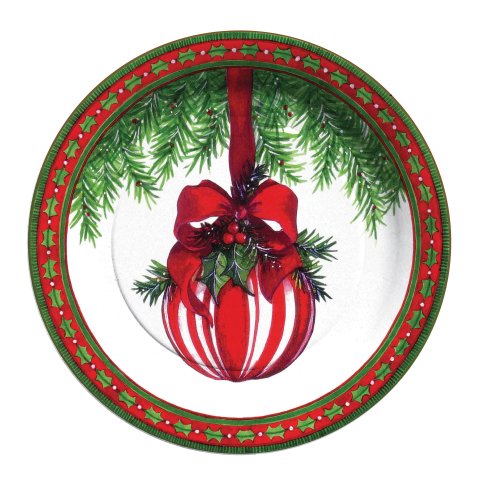 Studio : C.R. Gibson Publisher : C.R. Gibson Binding : Kitchen Product Description Artist Sally Eckman Roberts' Fanciful Ornament design features the vibrant greens of holly and pine and vivid red ribbon and ornaments. The holidays are the perfect time to entertain friends and family and C.R. Gibson has just the right paper tableware to make those events simply stylish! Our wide range of looks offer both traditional elegance and whimsical style. Beautiful holiday patterns and images grace artful designs from both classic icons of holiday design and new artist alike. When you want the best in party and giftware, trust C.R. Gibson. From memory books to note cards and every day to special events, C.R. Gibson has meant quality and style since 1870. 0