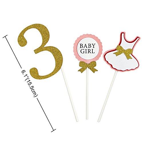3pcs small cake topper set :Sweet bowknot dress design for baby girl. Made of Paper