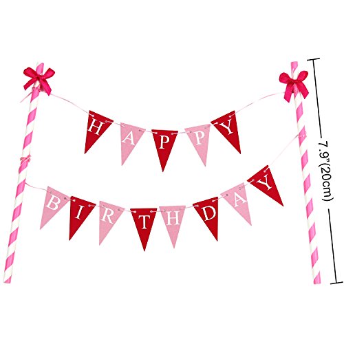 KUNGYO Mini Happy Birthday Cake Bunting Banner - Handmade Pennant Flags 3rd 3 Years Old Baby Girl Birthday Party Cake Topper Decorations