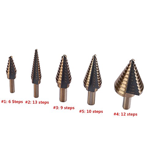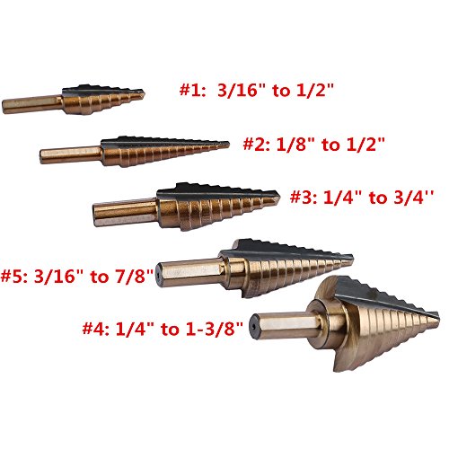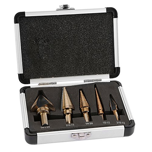 OCGIG 5Pcs/50 Sizes HSS Cobalt Step Drill Bit Set with Aluminum Case