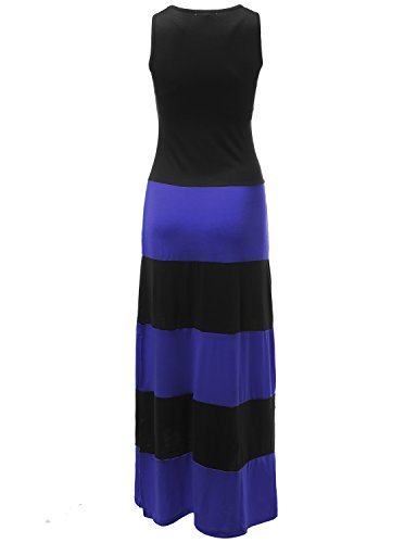 Awesome21 Stripe Colorblock Sleeveless Tank Maxi Dresses Royal Blue Size XL