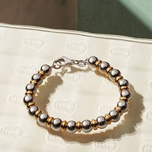 Sterling silver and 24kt yellow gold over sterling silver, versatile two-tone bead bracelet for women.