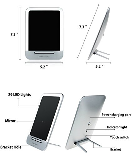 - Built in 29pcs Adjustable LED lights: The LED lights are energy-saving with USB charging,halo LED lights around the edges cast a soft glow so your face always looks flawless.