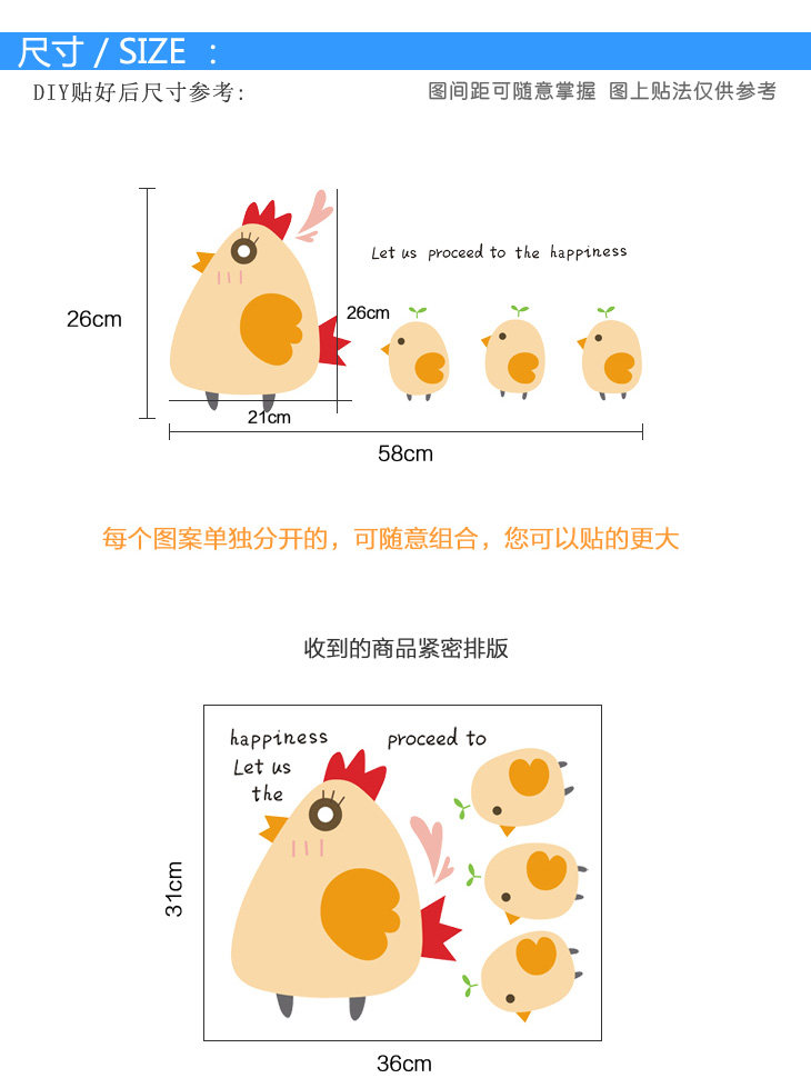 卫生间厨房橱柜冰箱门贴儿童房墙壁贴画可移除墙贴向幸福出发