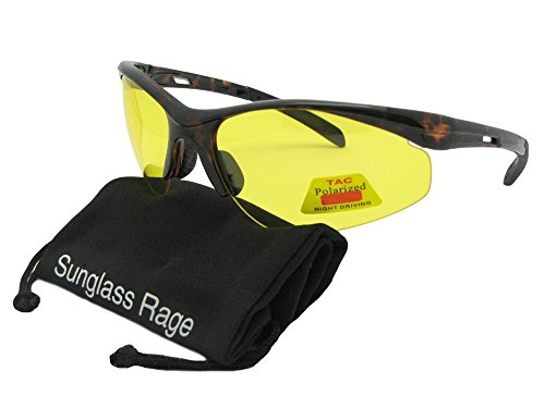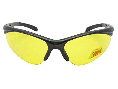 Product Description Polarized yellow sunglasses medium size wrap around frame rated with UV400 protection. Great for low light times of day. This frame fits medium size to slightly bigger size faces best. Very nice inexpensive light weight yellow polarized sunglasses. Measurements 5 1/4 Inches Wide x 1 3/4 Inches Height 5 Inch Long Temple Arm Length 0
