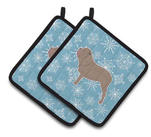 Caroline's Treasures Winter Snowflake Neapolitan Mastiff Pair of Pot Holders BB3565PTHD, 7.5HX7.5W, Multicolor