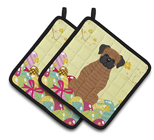 Caroline's Treasures Easter Eggs Brindle Boxer Pair of Pot Holders, 7.5HX7.5W, Multicolor