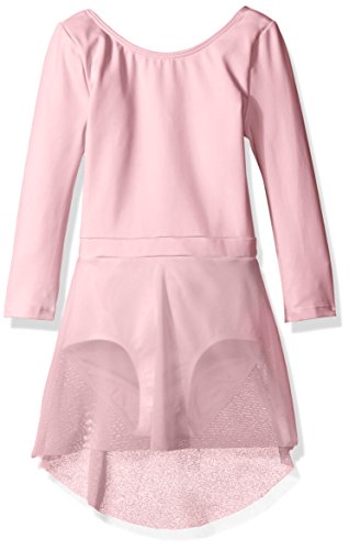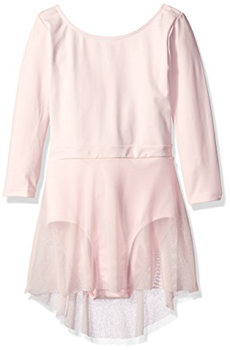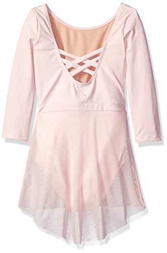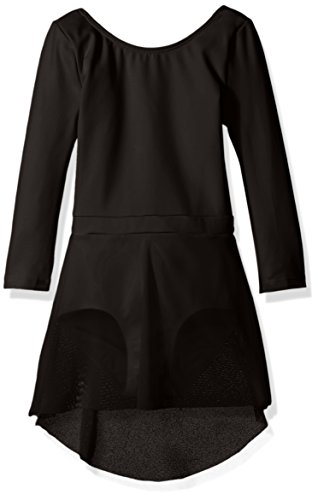 Danskin girls' new York city ballet three-quarter sleeve lattice back skirted leotard in a smooth tactel and lycra blend. Features a sleek compression fit, full front lining, banded waist inset, attached sheer hi-low skirt, plus a deep scoop back with woven lattice detail.Feature