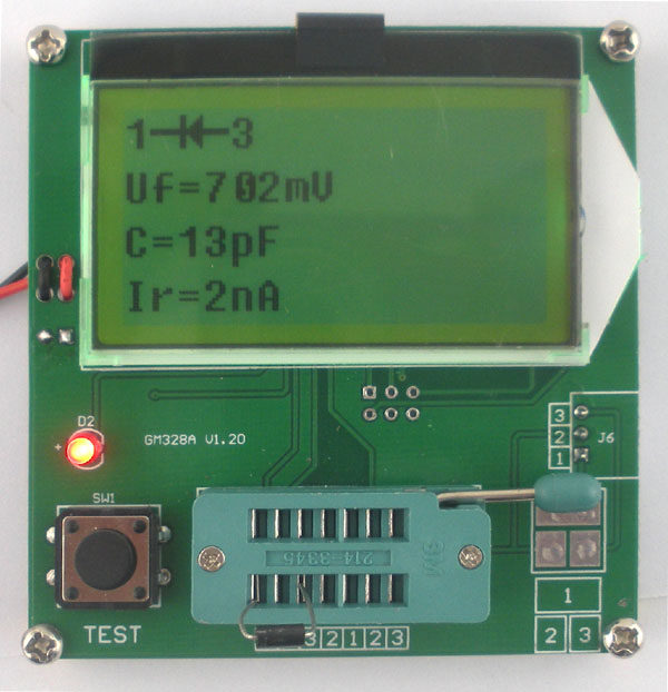 2.测量一个1N4007型二极管,非常清楚的显示了二极管正负极和结压降、结电容、反向电流等参数