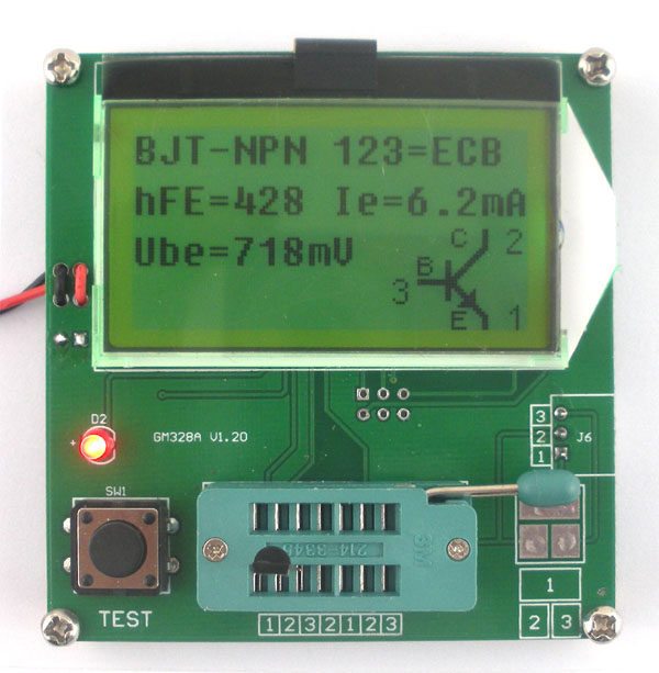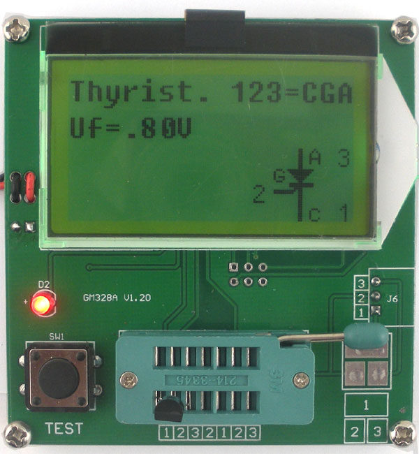 4. 测量单向晶闸管MCR100-6,很容易把引脚区分开来