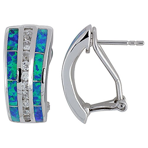 These Earrings are made of Solid Sterling Silver, Rhodium plated for anti tarnish, and Hand Inlaid with Synthetic Blue Opal. You will be pleased with the Excellent Quality of Materials and Workmanship used in these earrings. We Carry a Large Variety of Synthetic Opal Pendants, Bracelets and Rings To make Matching Sets. ?Feature