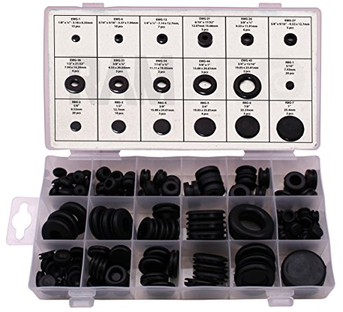RamPro 125 Piece Rubber Grommet Eyelet Ring Gasket Assortment, Set of 18 different sizes, with See-through Divided Organizer Case – Ideal for Automotive, Plumbing, and PC hardware/Piano repair etc.