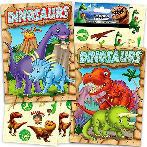 Delight your Dinosaur fan with this Dinosaur Coloring Book Super Set -- 2 coloring books and over 50 Dinosaur stickers! A great gift for your favorite Dinosaur enthusiast! This Dinosaur coloring book set with Dinosaur stickers will provide many hours of fun with games, puzzles, mazes and coloring activities. Includes 2 Dinosaur coloring books -- each measure approximately 8 x 11 inches. Includes a pack of Dinosaur stickers. Perfect as Dinosaur party supplies and party favors. A great addition to Dinosaur toys.Feature
