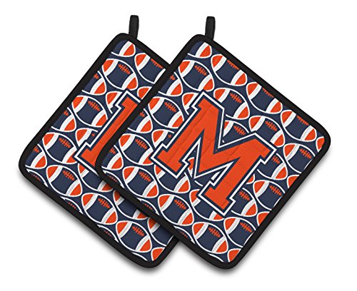 Caroline's Treasures Letter M Football Orange, Blue & White Pair of Pot Holders CJ1066-MPTHD, 7.5HX7.5W, Multicolor