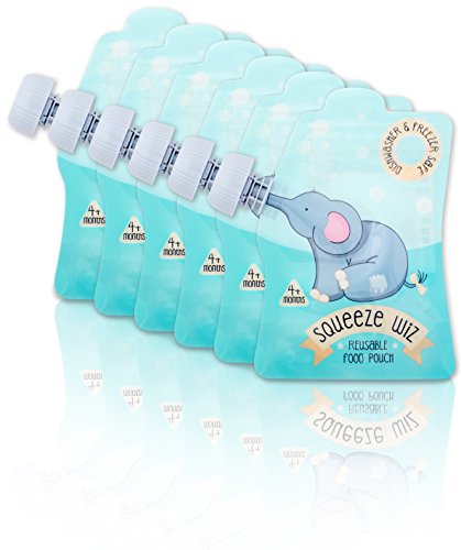 BEST SELF STANDING POUCHES – Squeeze Wiz pouches are self-standing, with wide top double zipper and a side spout, for easy filling and feeding and for a leak free experience.