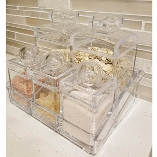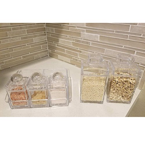 Ikee Design Clear Acrylic 5 Pieces SEASONING BOX SPICE JAR Seasoning Containers and Food Storage Condiment Jars Dispenser with Lid & Tray