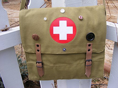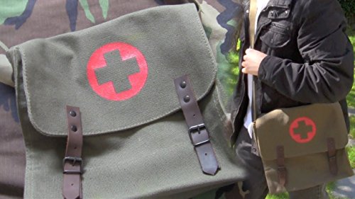 -. Title : OD Vintage Army NATO Medic Shoulder Messenger Bag w/ Red Cross