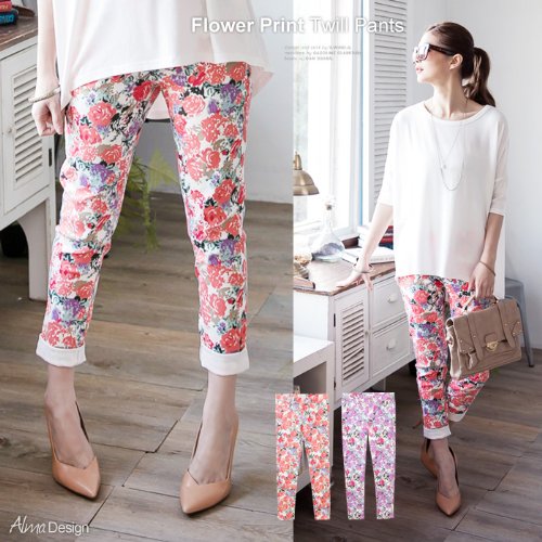 -. Title : fba-1000104 L ピンク 花柄×ストレッチ!!本格派ツイルスキニーロングパンツ/ボトムス/ホワイトデニム