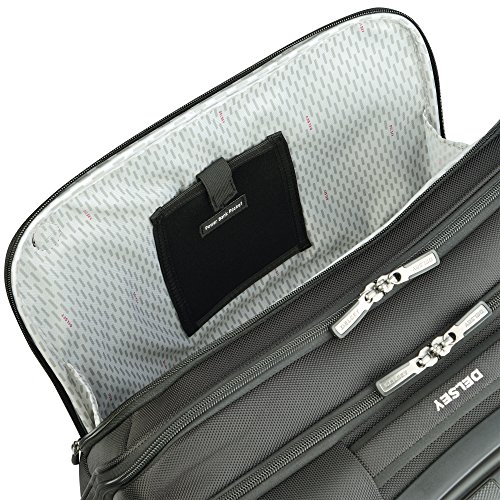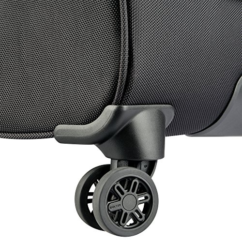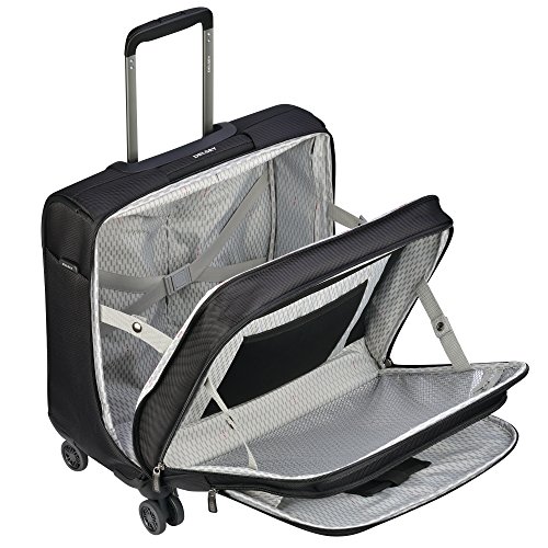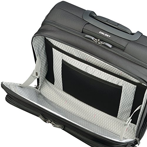 Studio : Delsey Luggage, Inc. Publisher : Delsey Luggage, Inc. Binding : Apparel Product Description Cruise Soft by Delsey Paris is made for the traveler who is looking for durable luggage with exceptional organization options. This Spinner Trolley Tote is perfect for all your business needs on the go. The exterior of this bag has two zippered compartments with a dedicated neoprene pocket for a power bank and cable port to charge electronics on the go. The trolley has a rubberized non-slip grip on the trolley handle, recessed to carry handle, dual wrapped carry handle, and four double spinner wheels for easy maneuverability. Easily connect this tote to your checked luggage by using the smart band on the back of the luggage to slip over the trolley handle, which doubles as a pocket when not in use. On the interior, this bag includes tie down straps keep your personal belongings secure, a double padded sleeve for a tablet and up to a 15.6" laptop, and a zippered compartment for personal items. The Cruise Soft Spinner Trolley Tote is made of ballistic nylon, which is extremely durable and resists dust, moisture and abrasion. Worldwide Limited 10 Year Warranty. 0