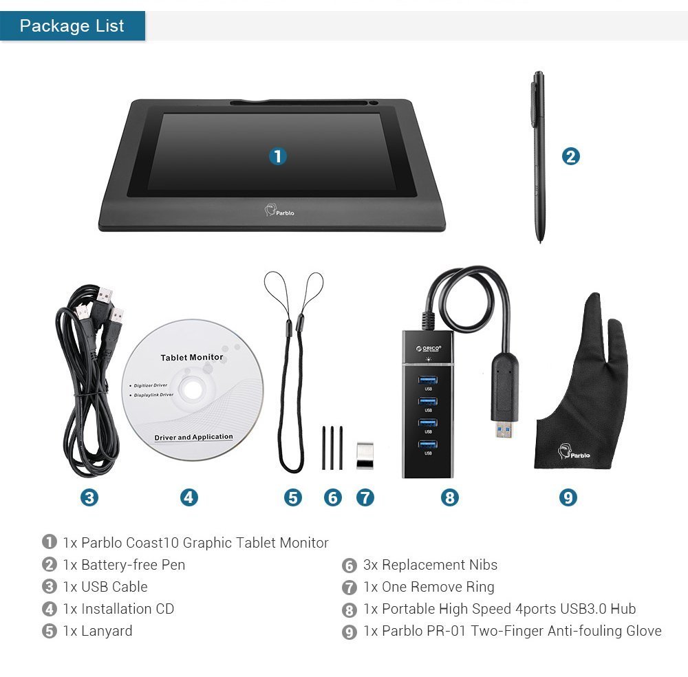 1 x Parblo Coast 10 Graphic Tablet Monitor