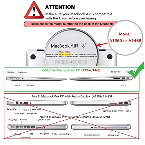 Case Compatible with: MacBook Air 13" Model: A1466 Release 2016: MMGF2CH/A, MMGG2CH/A Release 2015: MJVE2LL/A, MJVG2LL/A Release 2014, 2013, 2012 MD760LL/B, MD760LL/A, MD761LL/A MD231LL/A, MD232LL/A