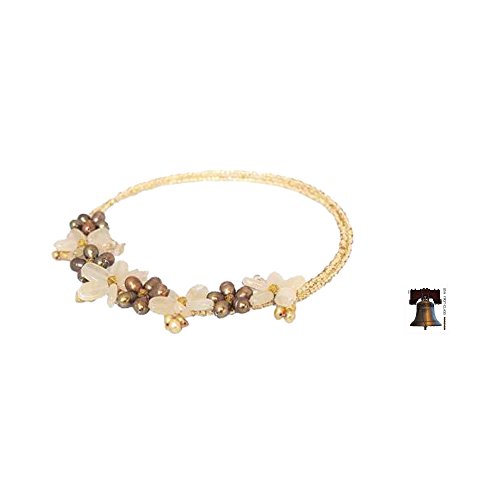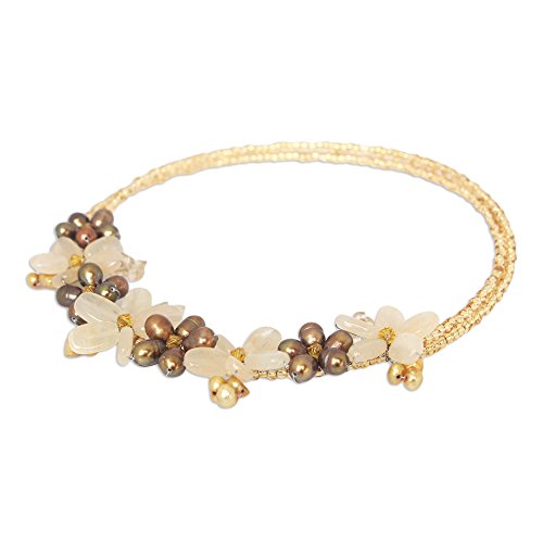 About this item: Threaded by hand in beautiful blossoms, gemstones become a dazzling bouquet. Nareerat selects a bevy of pearls in copper and yellow to combine with yellow quartz and dyed quartz. They center a choker of tiny beads.