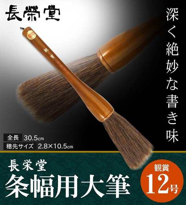 コシの強い天尾を使用した条幅用筆。弾力があり、力強い表現が可能です。 製造国:日本 素材・材質:穂先:馬毛・天尾軸:木軸ダルマ 商品サイズ:全長:30.5cm、穂先:2.8×10.5cm 仕様:条幅用毛色:茶 ※サプライヤー直送品 ご注文後2~3営業日後の出荷となります【商品名】長栄堂 条幅用大筆 観賞 (12号) 30131