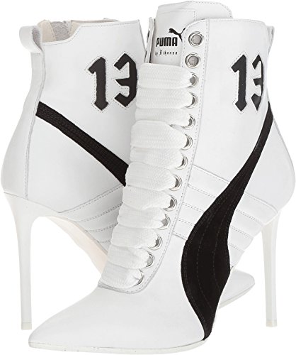 Product DescriptionA contrast suede logo and quilted stripes detail the side of these pointed-toe PUMA sneaker booties. Wide lace-up closure and exposed side zip. Stiletto heel and synthetic sole.0