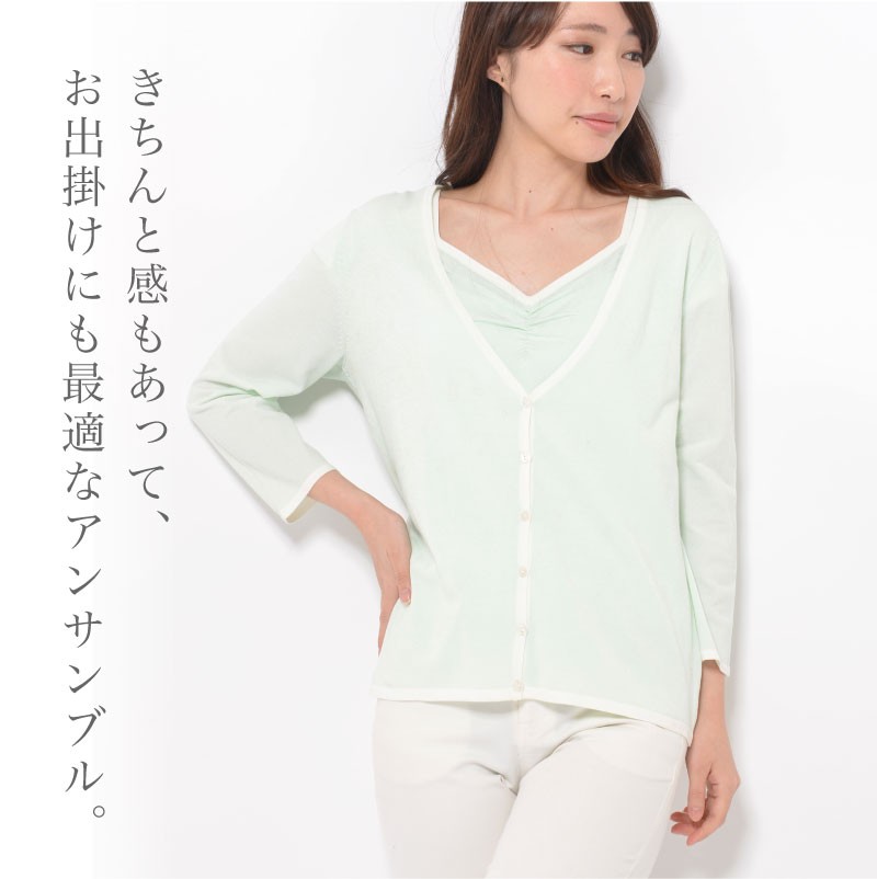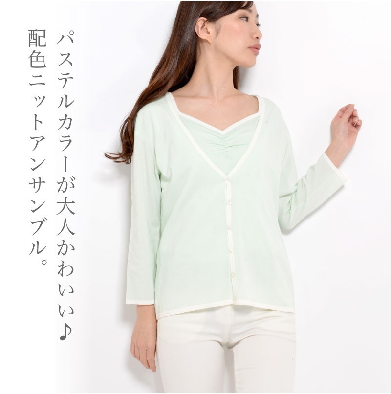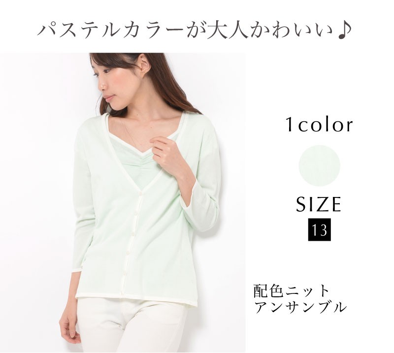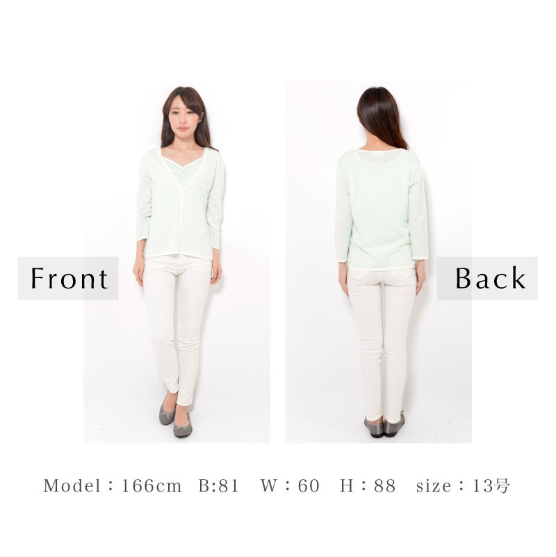 ()内は対応ヌードサイズ 表記は全てcm [カットソー] バスト92(89) 着丈53 裄丈27 [カーディガン] バスト98(89) 着丈57 袖丈46 肩幅36 |