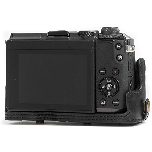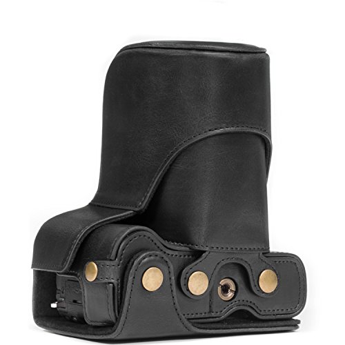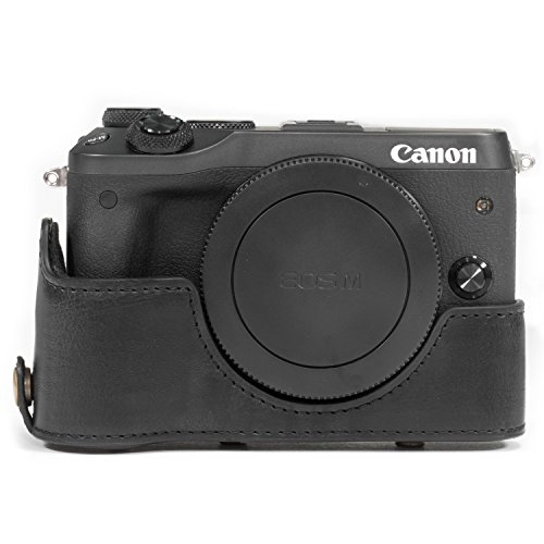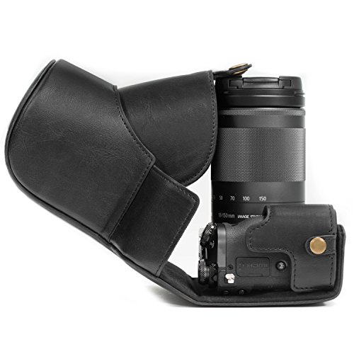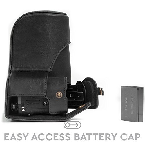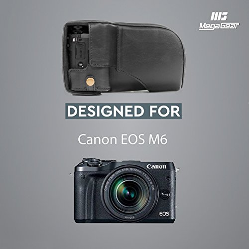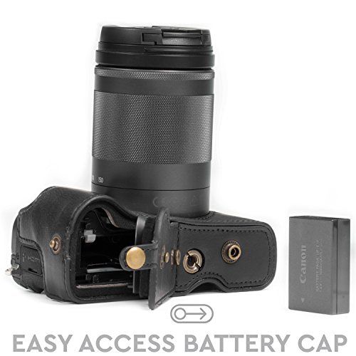 MegaGear Immer bereit Leder Kameratasche - Einfach zu Installieren, Stativ und peripheren Freundlich Zubehor - Kompatibel mit Canon EOS M6 |18-150 mm| (Schwarz)