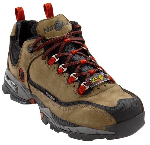 Amazon.com Product Description This stylish Nautilus is the perfect cross between a work boot and an athletic shoe. This premium, full-grain and water-resistant leather shoe has an ergonomically-designed wide-area steel toe cap. Lightweight for a steel toe but strong enough for the job, this is the comfortable all-purpose shoe you've been looking for. 0