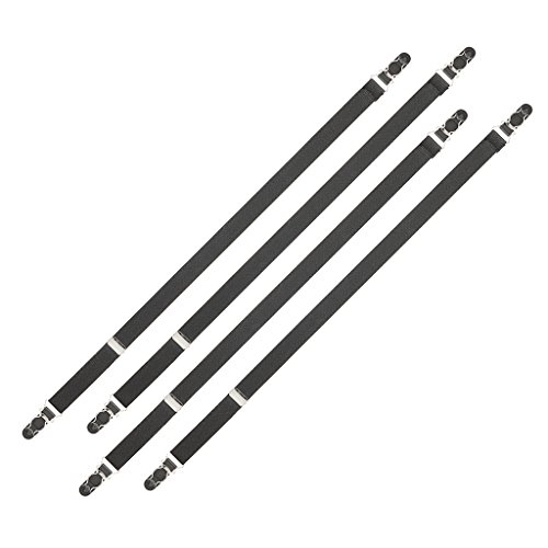 Binding : Apparel Product Description Invite yourself onto the Best Dressed List wearing our shirt stays! Often used with military uniform to maintain a crisp, neat look, our shirt stays will hold your shirt securely in place. As an added benefit, they will hold your socks up! The elastic straps attach securely to the top of your socks and to the bottom edge of your shirt. Made in the USA of high quality components, the length of the straps is adjustable via a metal adjuster. Typically worn two in the front and two in the back, these are sold in a set of four. 0